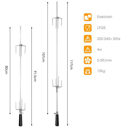 Details: MVPower Grillspieß Set 107cm Motor 220-240V (Universal Einsetzbar)